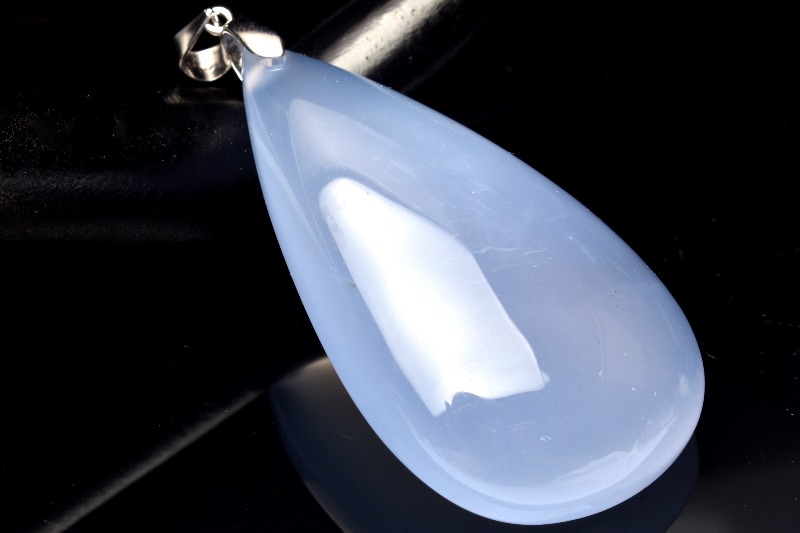 【1点物】Silver925◇ツヤ感抜群 ブルーカルセドニー 47x25mm ドロップ ペンダントトップ _PC2954