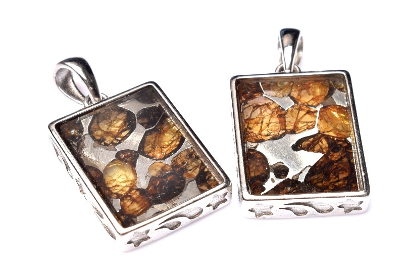 鉄やニッケルの合金とケイ酸塩鉱物からなっていて、中でも合金の中にケイ酸塩鉱物の一つであるかんらん石(ペリドット)がまじっているもので、パラサイトと呼びます。