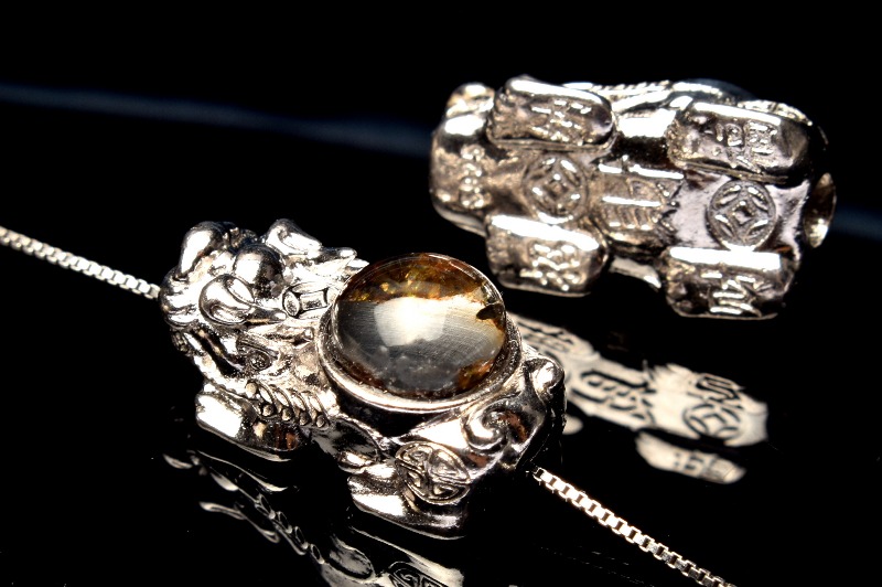 Silver925◇希少 パラサイト隕石 8mm 貔貅 ペンダントトップ 1個売り _PRG2280
