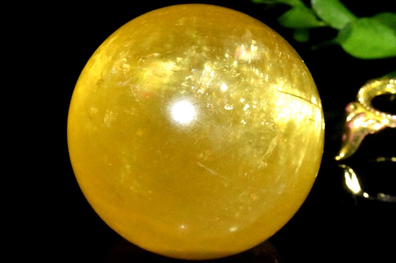 【1点物】キャッツアイ効果 イエローカルサイト 57mm 丸玉(台座付き) スフィア _CG6214【宅急便のみ】