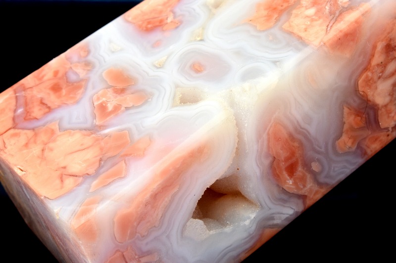 暖色系の瑪瑙(アゲート)の中にドゥルージーの内包をじっくり観察することができます。