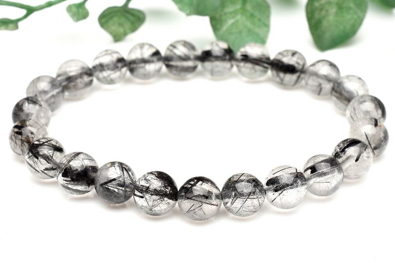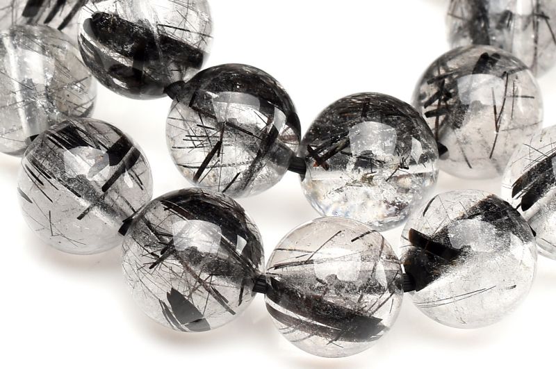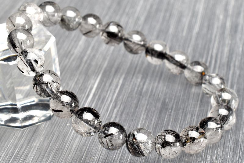 材質ブラックトルマリンインクォーツ 8mm 産地:ブラジル