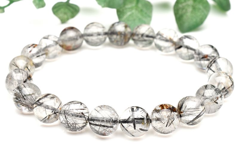 【1点物】太針入り! ブラックトルマリンインクォーツ 9mm ブレスレット _U6009