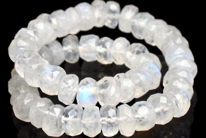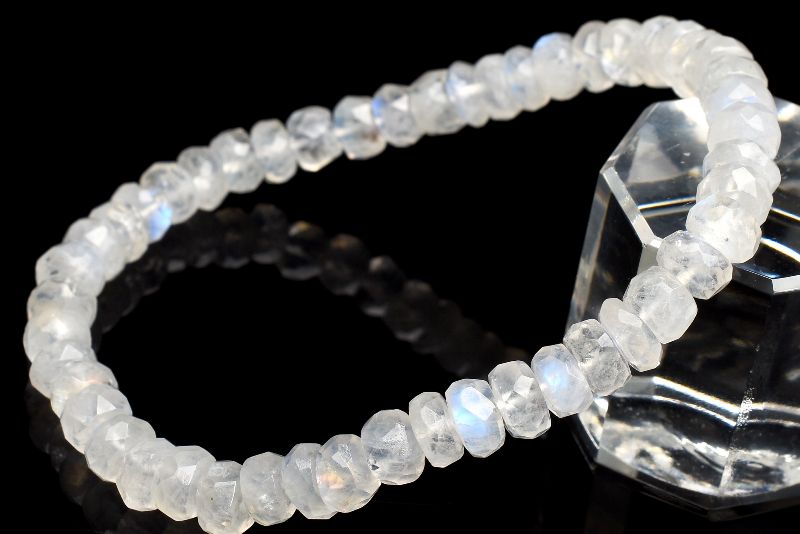 【1点物】キラキラ◇インド産 ムーンストーン 3-4x6mm ボタンカット ブレスレット _U6041
