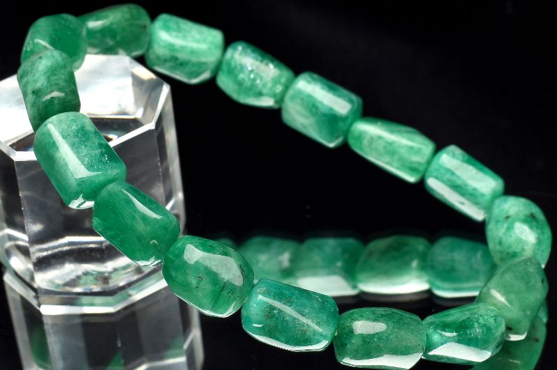 【1点物】AAAA☆透過性あり エメラルド 11-12x8-9mm タンブル ブレスレット _U6058