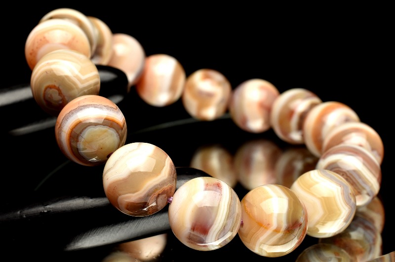 レースアゲートは玉髄の仲間で、小さな石英の結晶が集まってでき、白、灰、黒、赤、緑などが組み合わさった独特の縞模様が特徴で古来より国家の祭器、指導者の儀式などによく使われていたそうです。