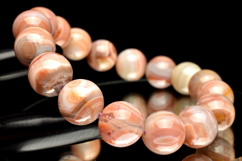レースアゲートは玉髄の仲間で、小さな石英の結晶が集まってでき、白、灰、黒、赤、緑などが組み合わさった独特の縞模様が特徴で古来より国家の祭器、指導者の儀式などによく使われていたそうです。