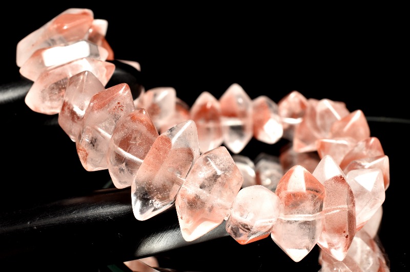 【1点物】希少形状 レッドファントムクォーツ 6-8x13-17mm 両剣ポイント ブレスレット _MA1969