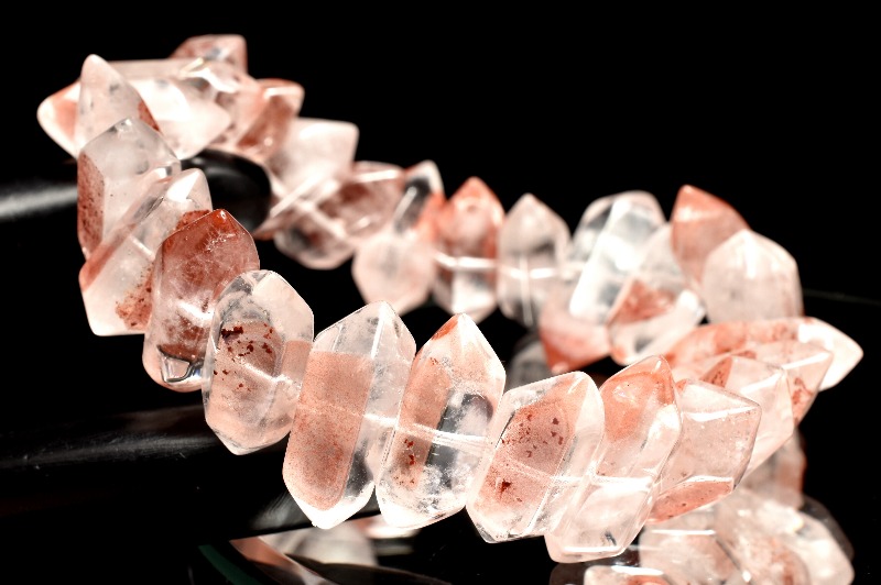 【1点物】希少形状 レッドファントムクォーツ 6.5-8.5x17-23mm 両剣ポイント ブレスレット _MA1973
