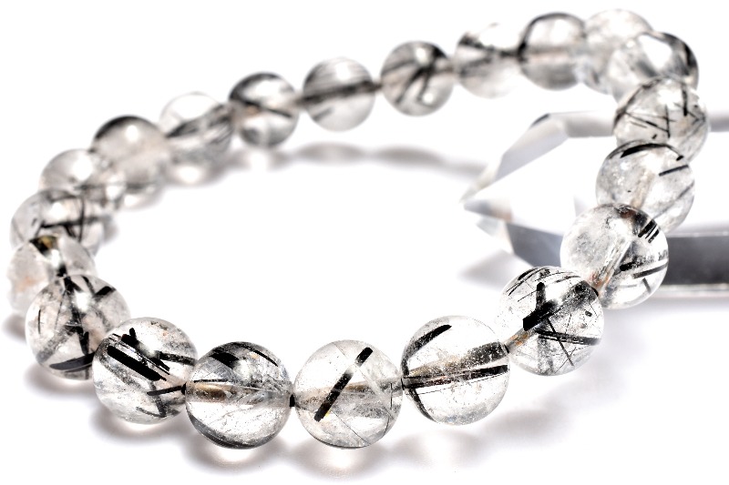 材質ブラックトルマリンインクォーツ 9mm 産地:ブラジル