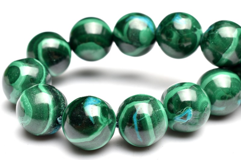 マラカイトの縞模様がくっきりと浮かび、中には天眼模様のなった珠もございます。