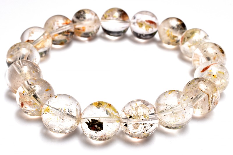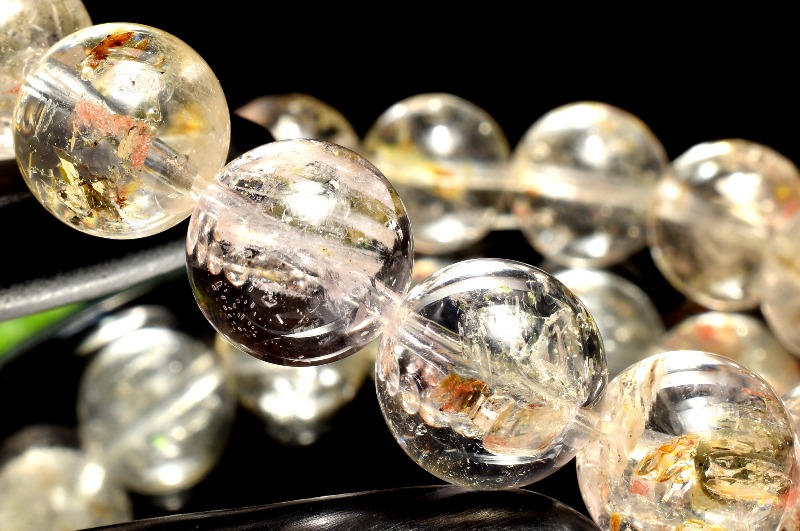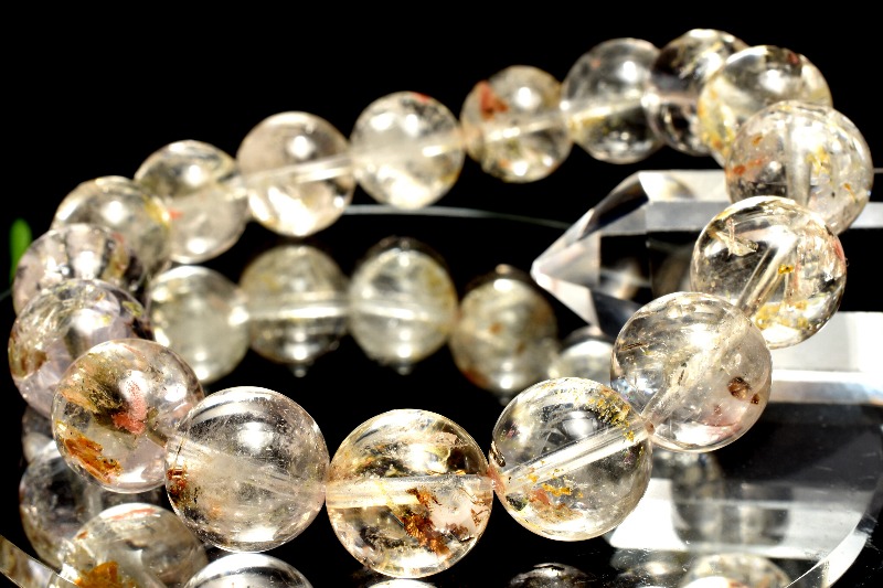 【1点物】希少◇ライモナイト入り オイルインクォーツ(石油入り水晶) 12.5mm ブレスレット _MA2121