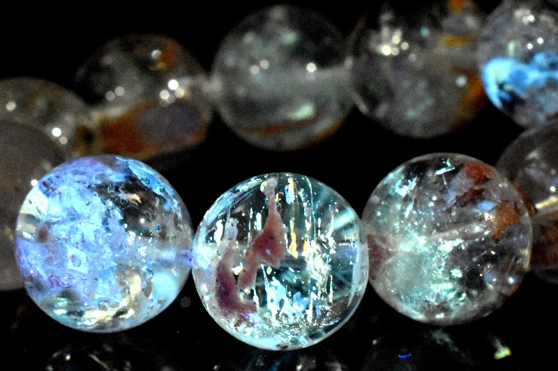 ブラックライトを当てるとオイルの部分が青緑に光る不思議な石オイルインクォーツ。