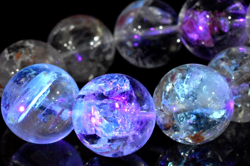 ブラックライトを当てるとオイルの部分が青緑に光る不思議な石オイルインクォーツ。