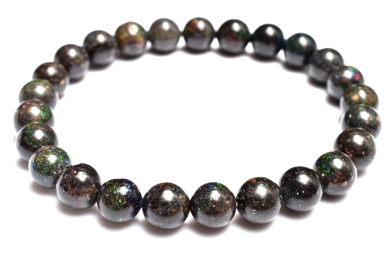 【1点物】遊色効果◇宇宙のよう ブラックマトリックスオパール 7.5mm ブレスレット _MA2169