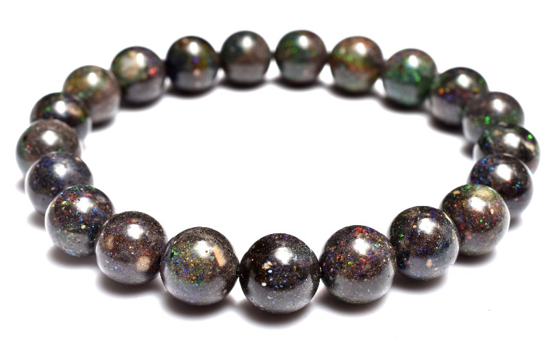 【1点物】遊色効果◇宇宙のよう ブラックマトリックスオパール 9mm ブレスレット _MA2173