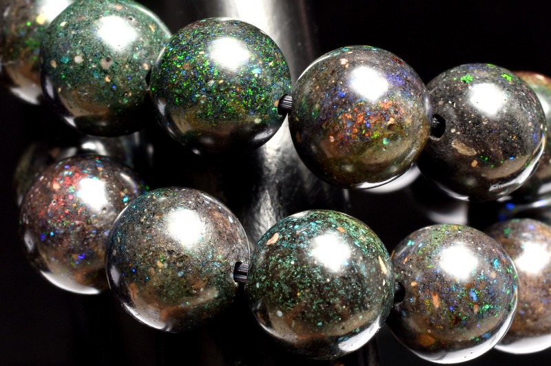 肉眼でも遊色は見られますが、強い光に当てると、まるで宇宙を見ているかのようにキラキラと煌めく美しいタイプ。