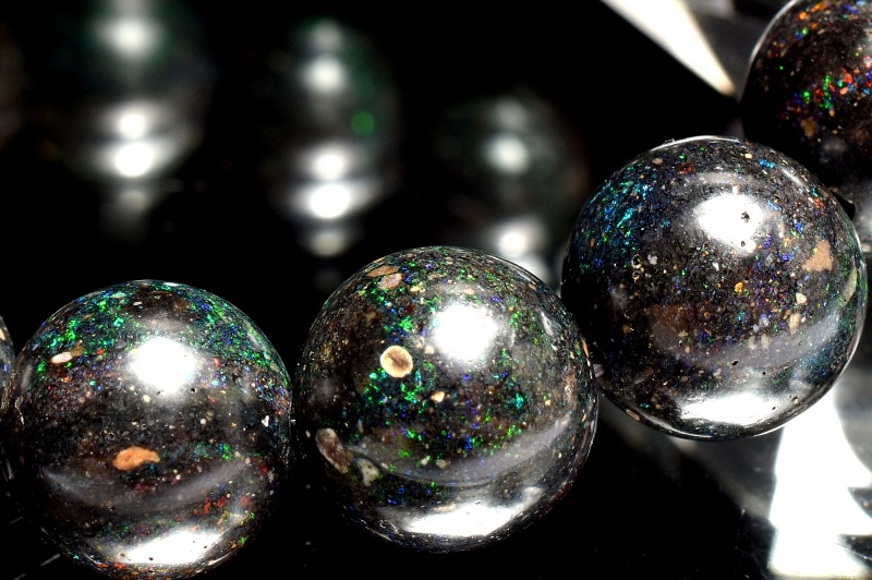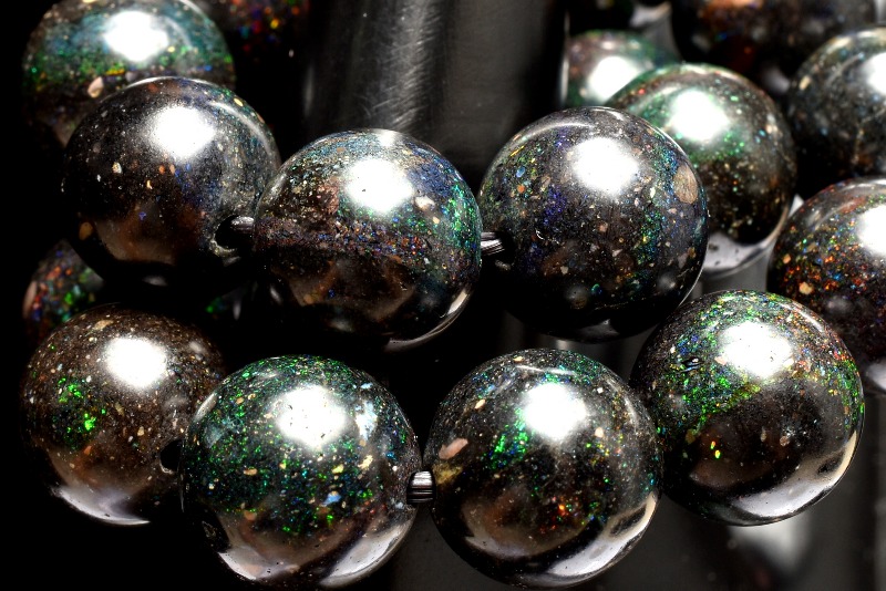 肉眼でも遊色は見られますが、強い光に当てると、まるで宇宙を見ているかのようにキラキラと煌めく美しいタイプ。