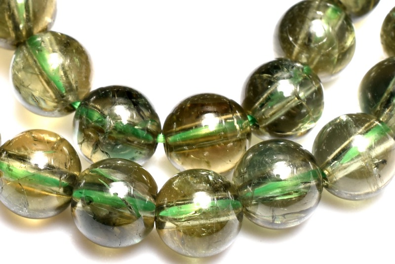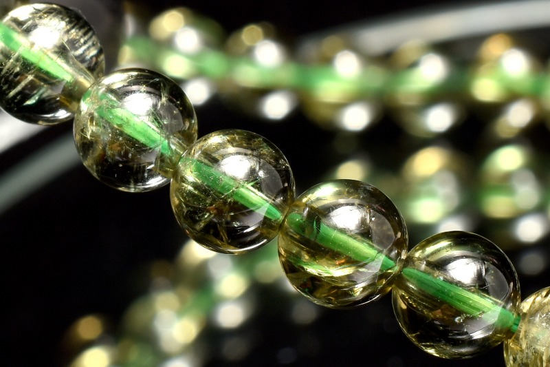 角度を変えると特有の多色性が見られ、グリーン〜イエローがかったグリーンへと変わる様はとても美しいです。