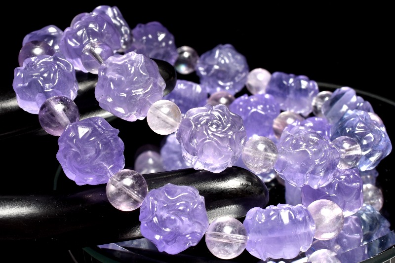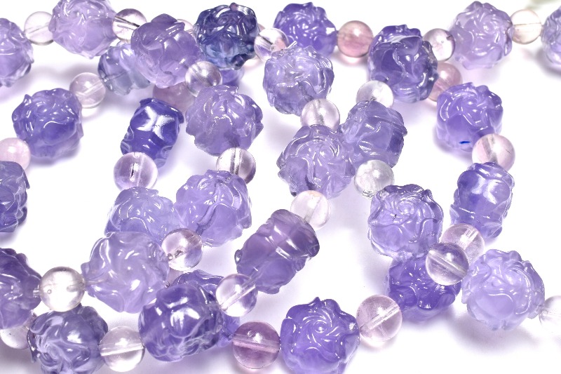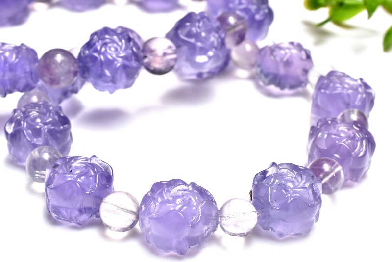 繊細彫刻◇ラベンダーパープル フローライト 13x12(丸玉6.5)mm 牡丹彫刻 ブレスレット 1個売り _BG5681