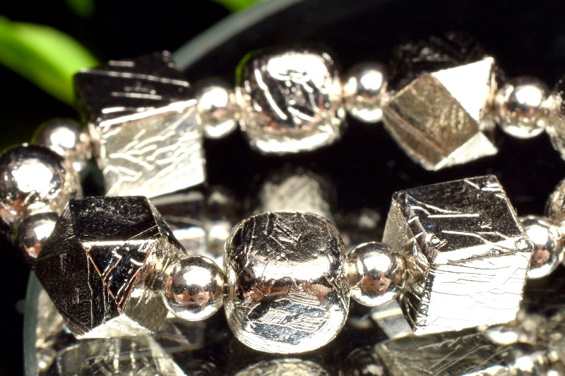 宇宙からの贈り物 メテオライト(アルタイ隕石) 6(丸玉3.5)mm 多面カット シルバーコーティング ブレスレット 1個売り _BG5684-1