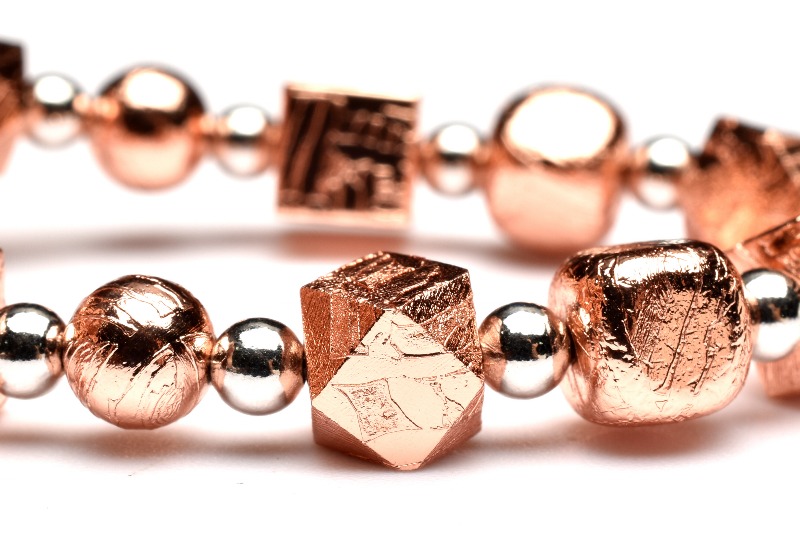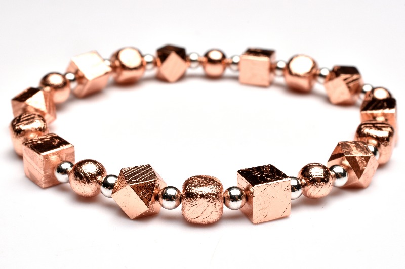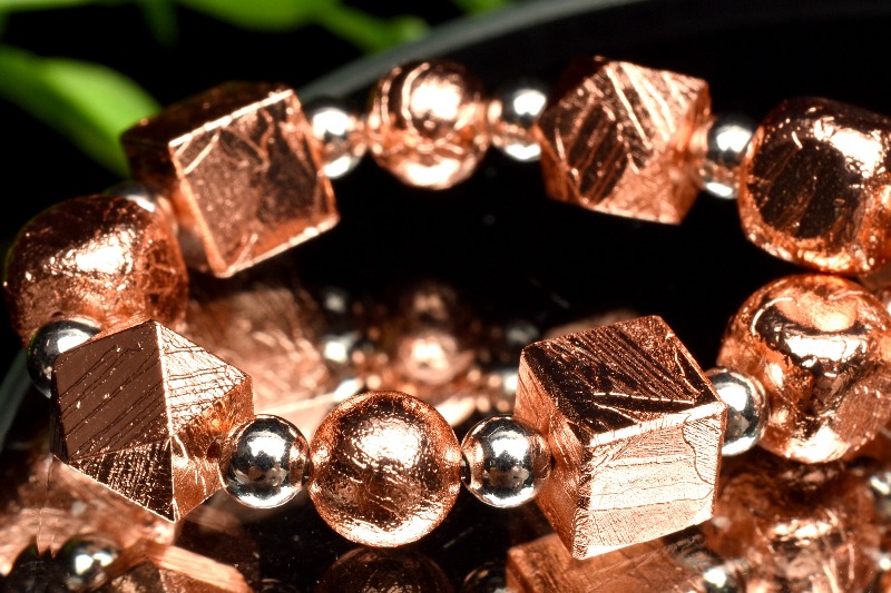 宇宙からの贈り物 メテオライト(アルタイ隕石) 6(丸玉3.5)mm 多面カット ピンクゴールドコーティング ブレスレット 1個売り _BG5684-2