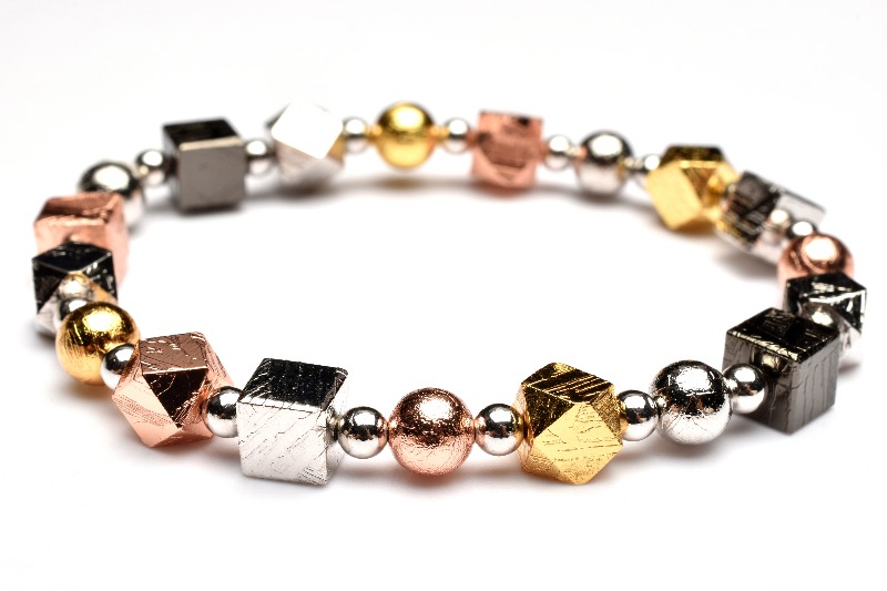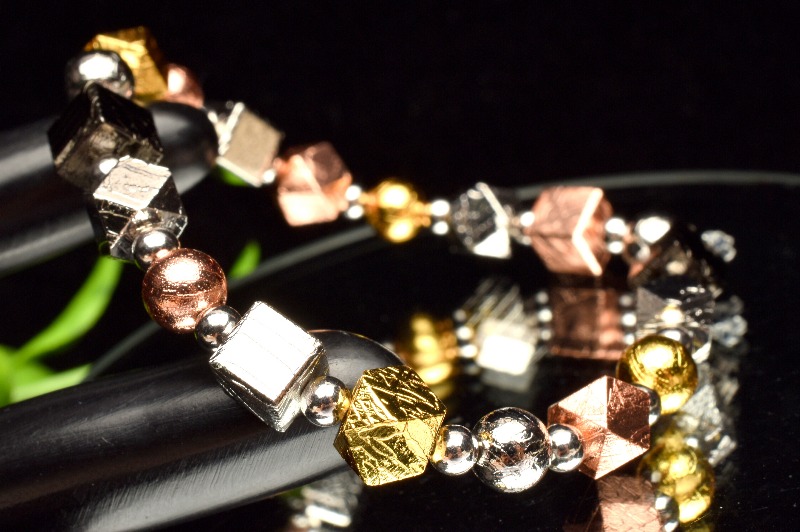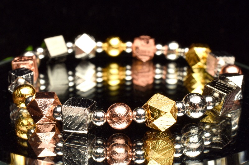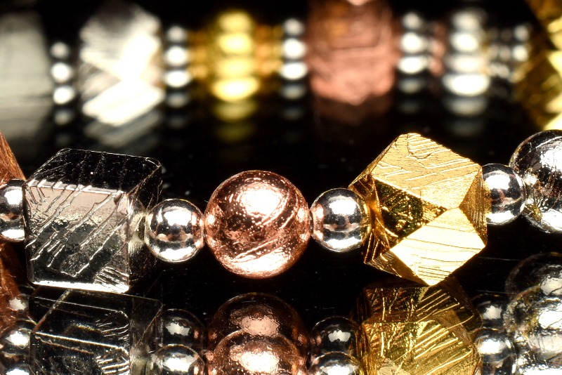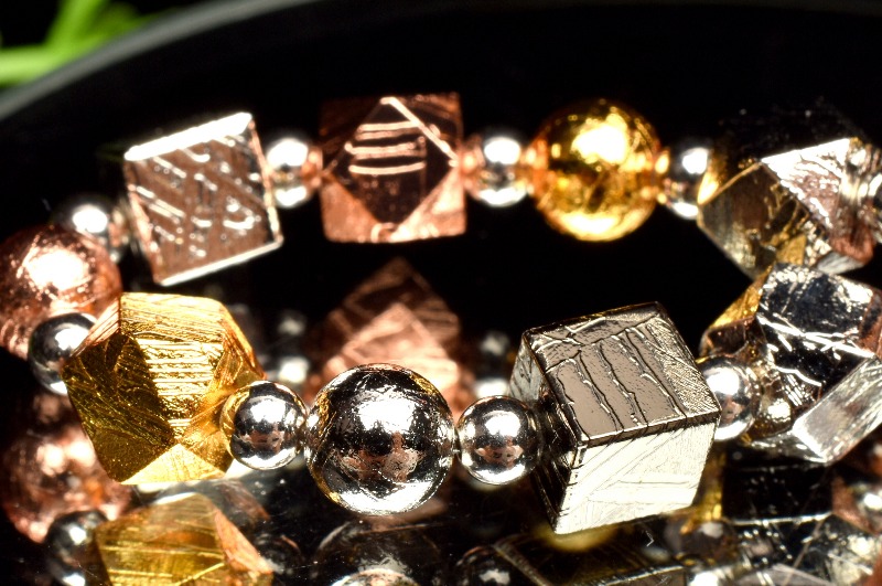 宇宙からの贈り物 メテオライト(アルタイ隕石) 6(丸玉3.5)mm 多面カット MIXカラー ブレスレット 1個売り _BG5684-4
