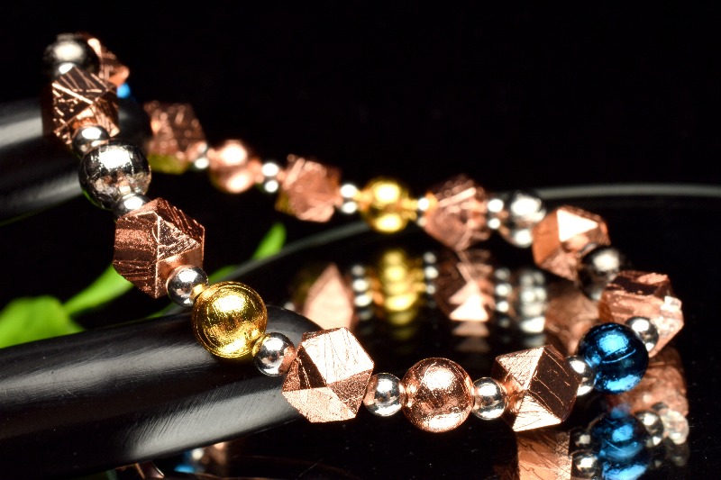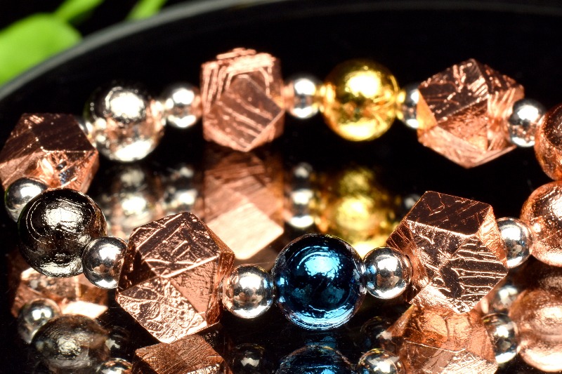 宇宙からの贈り物 メテオライト(アルタイ隕石) 6(丸玉3.5)mm 多面カット MIXカラー ブレスレット 1個売り _BG5684-5