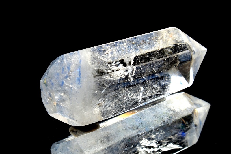 水晶の中でフワフワと青い華が咲いているような内包物が神秘的で美しいです。