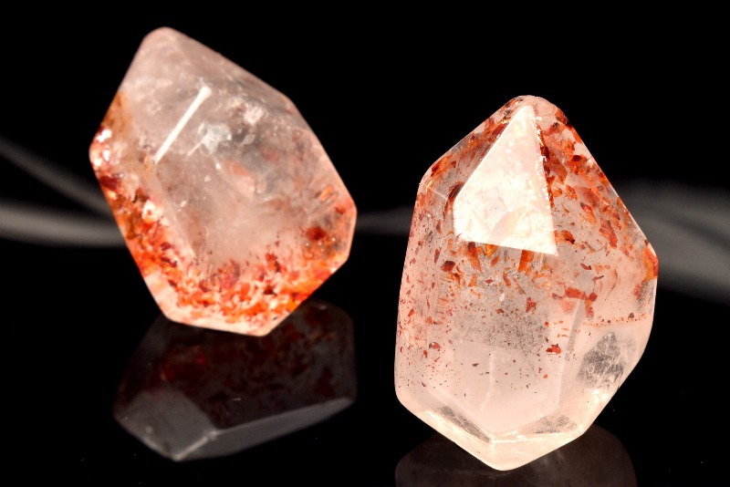 赤く美しい物はファイアークォーツ、その他にもハーレクインクォーツ、ハーレクイン水晶など流通名を多数持った天然石です。