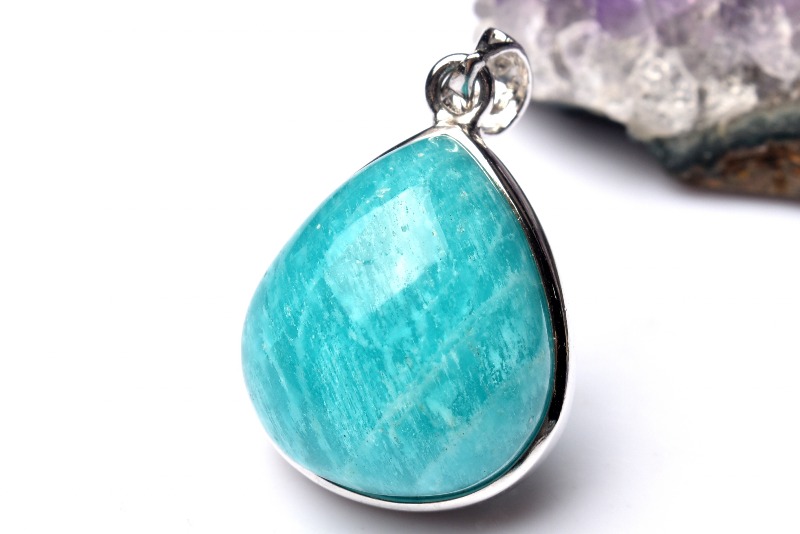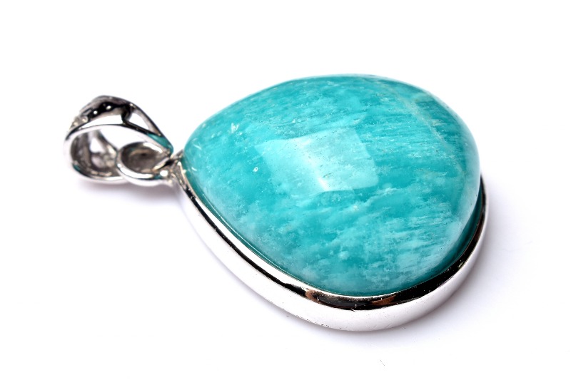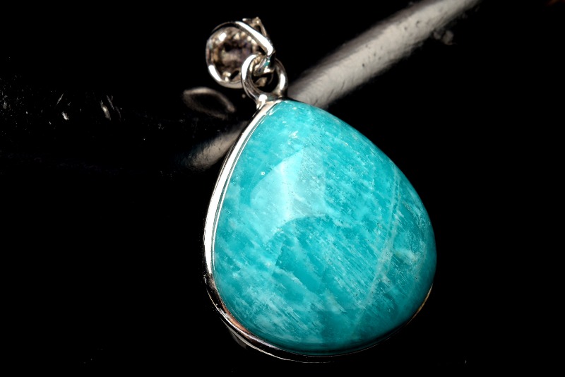 アマゾナイトのブルーとシルバー枠の相性が良く上品な印象のペンダントトップです。