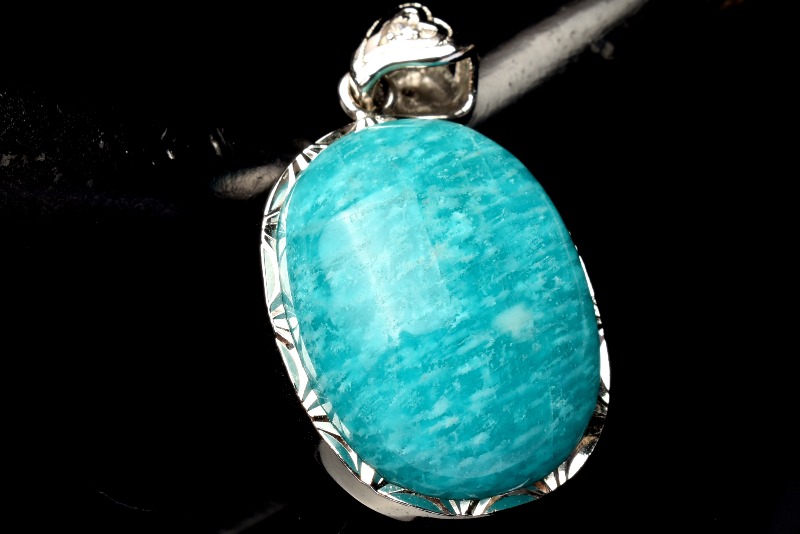 アマゾナイトのブルーとシルバー枠の相性が良く上品な印象のペンダントトップです。