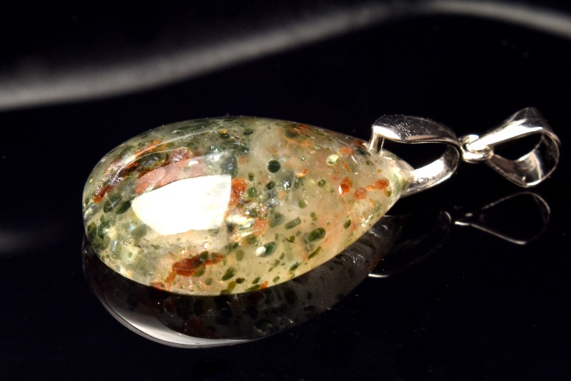 特徴・意味濃いグリーンのオージャイトと赤いガーネットが共生したレアなペンダントトップです。