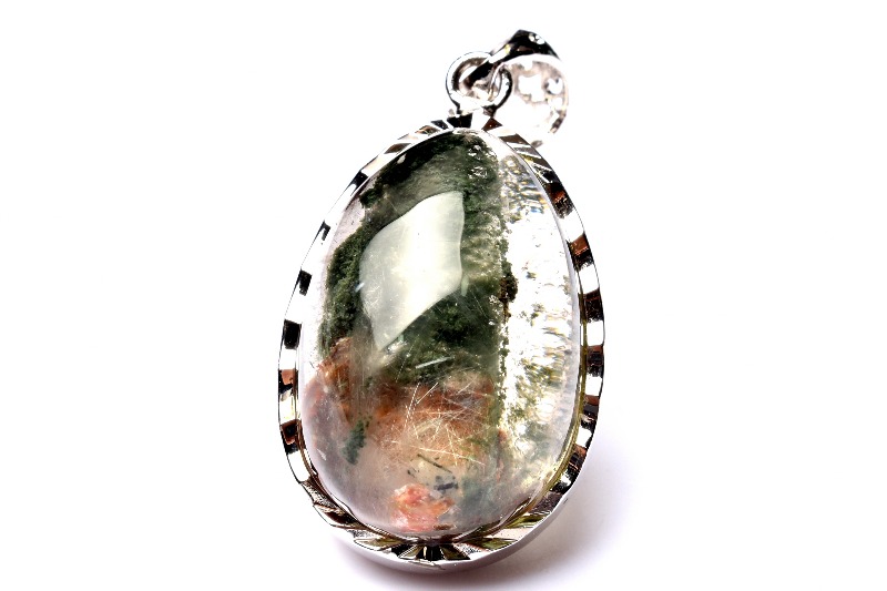【1点物】Silver925◇庭園水晶 グリーンファントムクォーツ 24x16mm ドロップ ペンダントトップ _PC3076