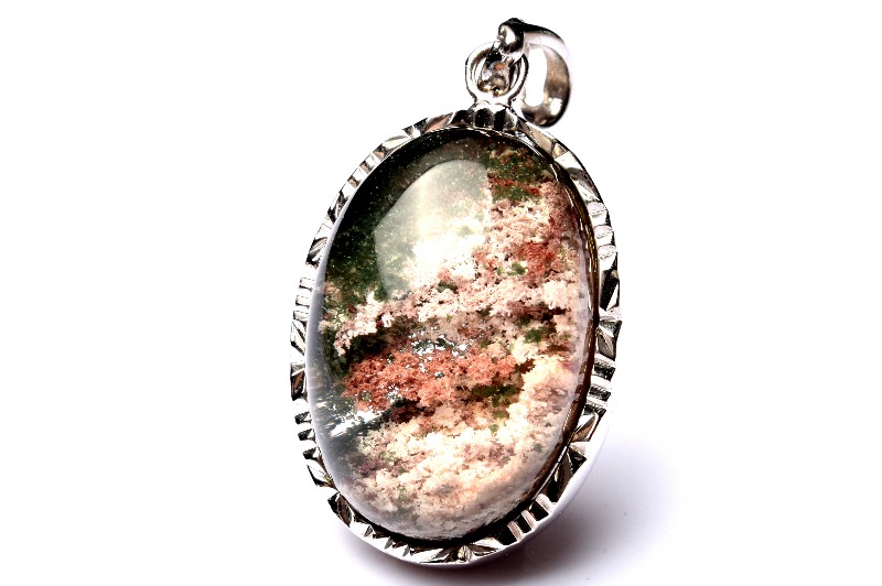 【1点物】Silver925◇庭園水晶 グリーンファントムクォーツ 23x16mm オーバル ペンダントトップ _PC3077