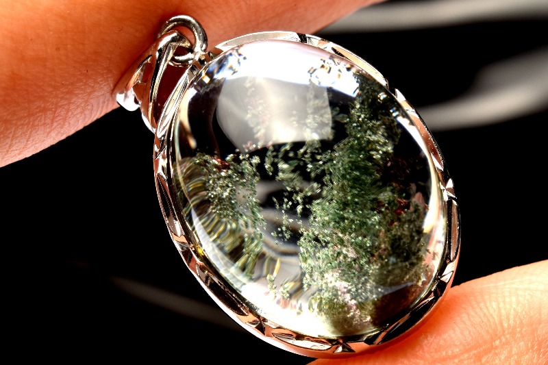 その生成過程から出来上がった鉱石は、一つ一つ異なる模様(世界観)を持ち、水晶の中に自然の風景を収めたように見えるため、和名を「庭園水晶」または「苔入り水晶」と呼ぶこともあります。