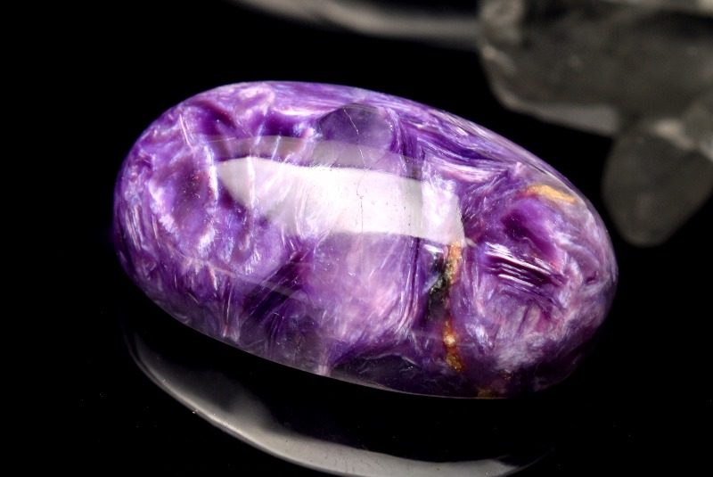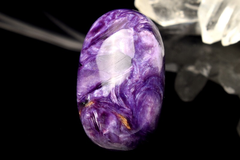 チャロアイトという名前の由来には、シベリアのチャロ川流域で発見された事とする説と、ロシア語の(Charo魅惑)から名づけられたという説がありますが、後者の方が有力であるとされています。その名の通り、この石の個性的な模様は、見る人を魅了してやみません。まさに、「魅惑の宝石」にぴったりな石です。