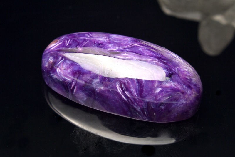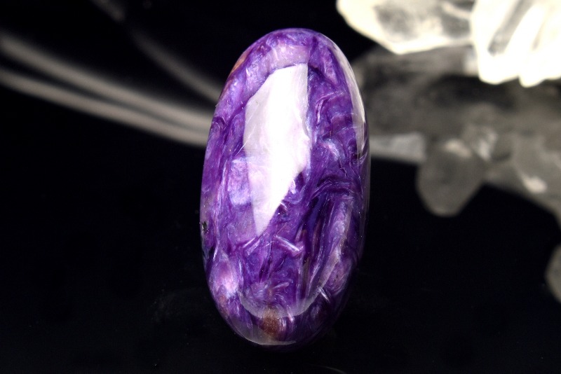 チャロアイトという名前の由来には、シベリアのチャロ川流域で発見された事とする説と、ロシア語の(Charo魅惑)から名づけられたという説がありますが、後者の方が有力であるとされています。その名の通り、この石の個性的な模様は、見る人を魅了してやみません。まさに、「魅惑の宝石」にぴったりな石です。