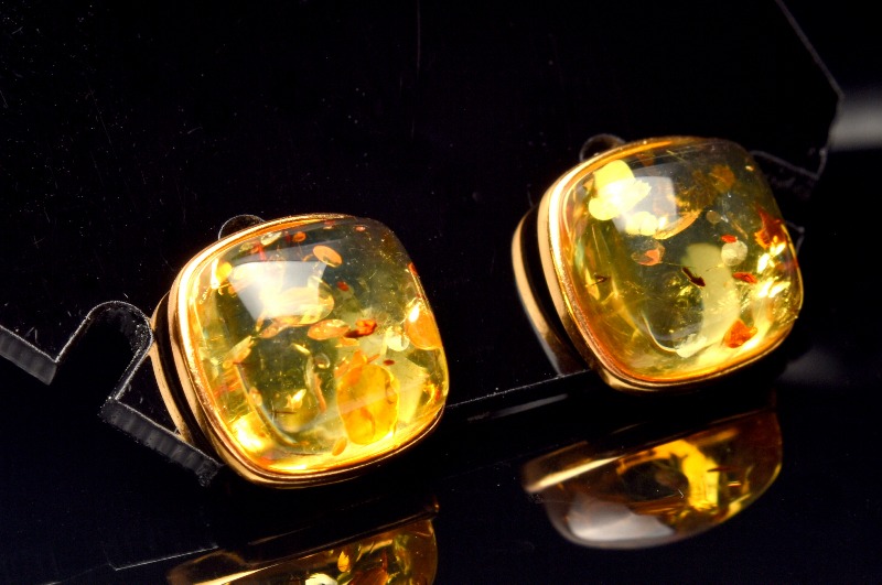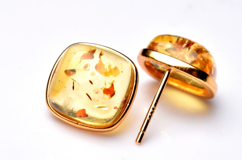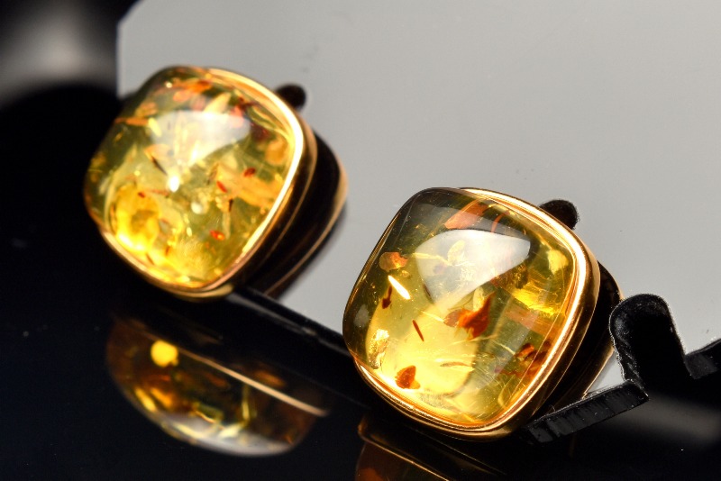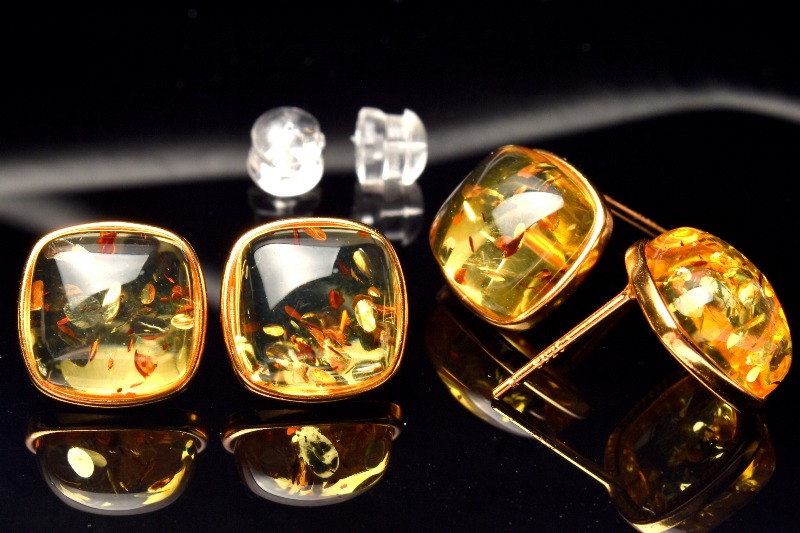 材質アンバー琥珀 9.5x9.5mm 産地:バルト海沿岸