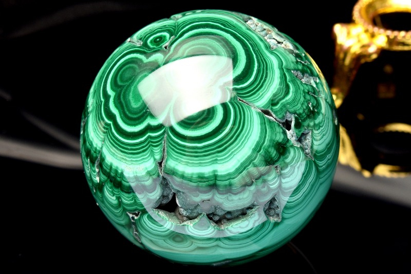 【1点物】高発色◇魔除け マラカイト(孔雀石) 36mm 丸玉(台座付き ) スフィア _CG6282【宅急便のみ】