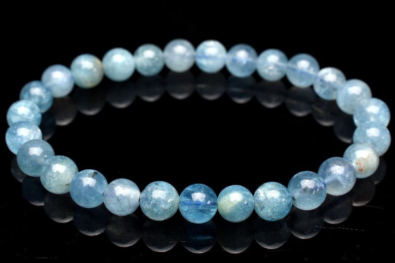 【1点物】海のきらめき アクアマリン 6.5mm ブレスレット _U6096