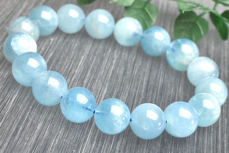 【1点物】海のきらめき アクアマリン 12mm ブレスレット _U6102