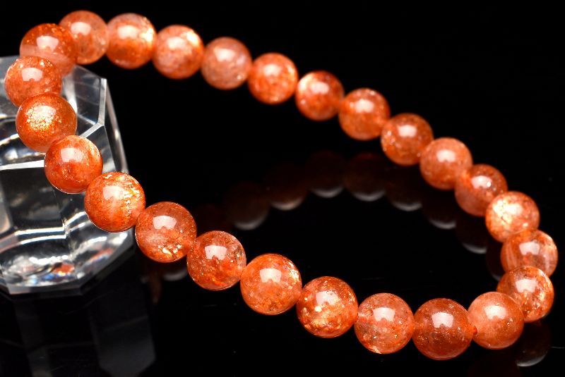 【1点物】インド産◇雲母の宝庫 マイカサンストーン 7.5mm ブレスレット _U6115