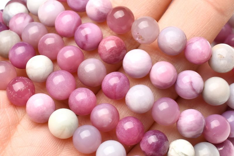 今回入荷分はミルキーながら高発色でまろやかな透過性もあり、珠によってアベンチュリンのような細かい煌めきも見られます。