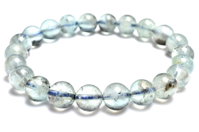 【1点物】南アフリカ産◇ミントブルー ブラックアクアマリン 8mm ブレスレット _MA2369