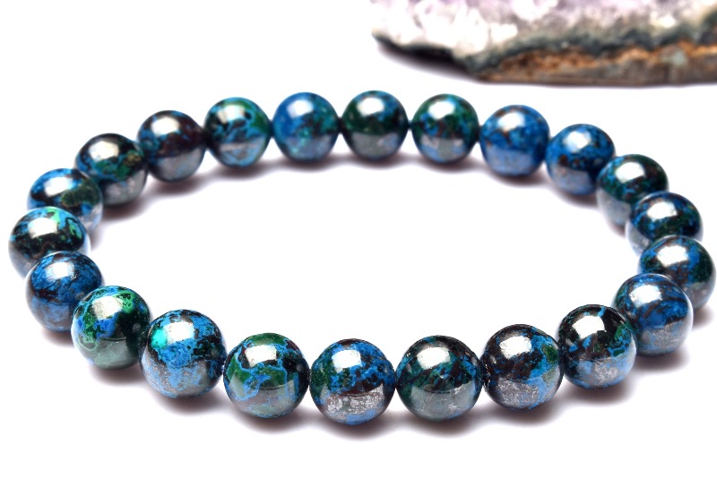 【1点物】高発色◇ペルー産 クリソコラ 8mm ブレスレット _MA2434