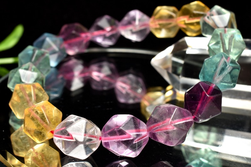 【1点物】マルチカラー MIXフローライト 12mm シンプルスターカット ブレスレット _MA2440