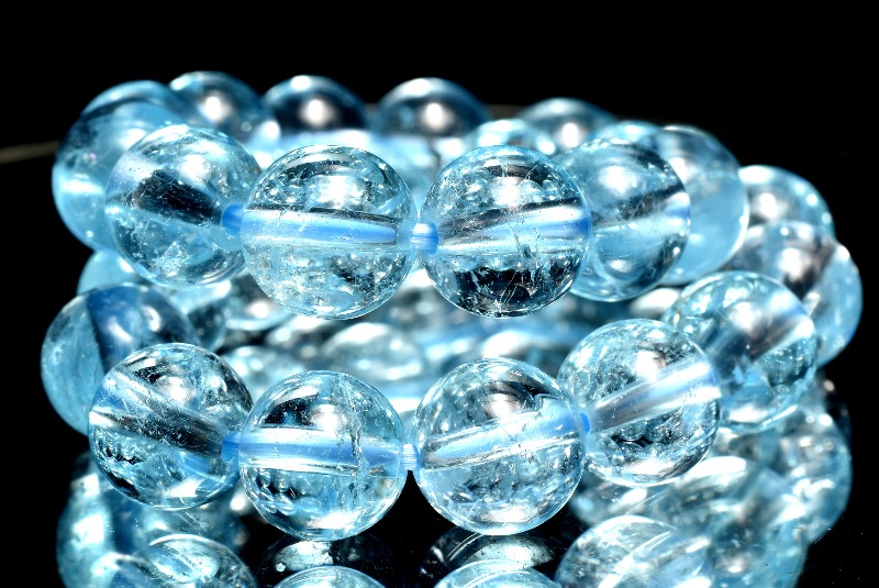 特徴・意味内包物は殆ど無く、瑞々しいブルーが印象的な爽やかなブレスレットです。