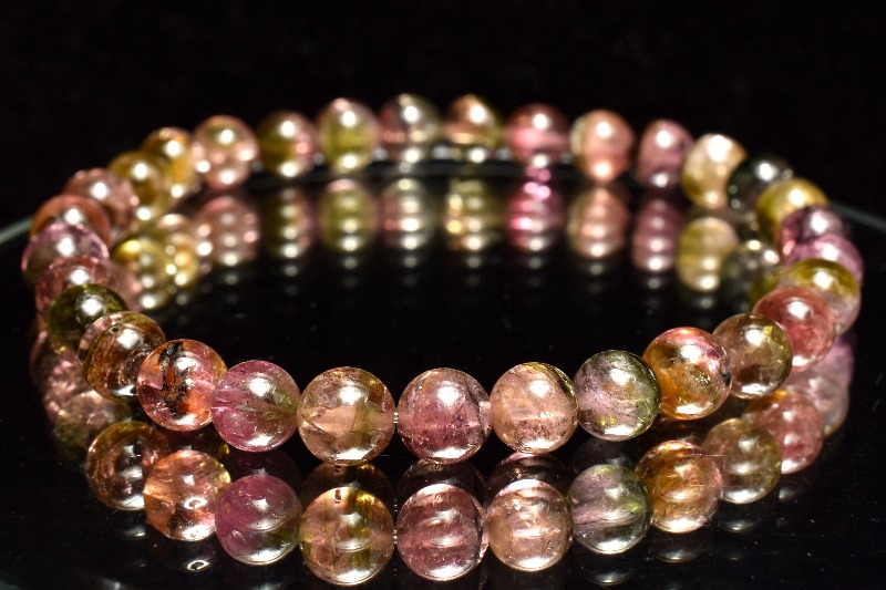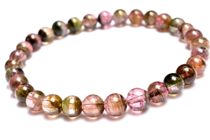【1点物】AA☆透過性あり ウォーターメロントルマリン 6mm ブレスレット _MA2631