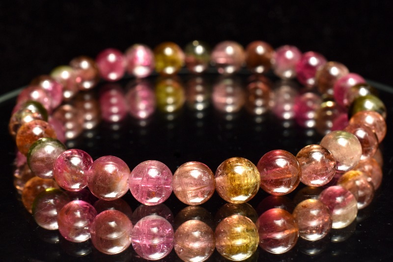 【1点物】AA☆透過性あり ウォーターメロントルマリン 6mm ブレスレット _MA2632